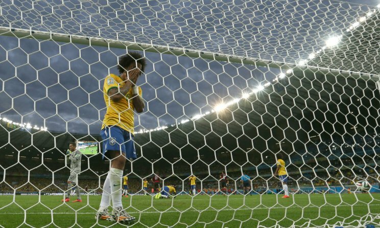 El conjunto de Luiz Felipe Scolari, con Neymar afuera del Mundial por la fractura de una vértebra causada por el colombiano Camilo Zúñiga en cuartos de final, salió a presionar en campo contrario, quizás su más grave error a la luz de los resultados, y Marcelo tuvo la primera chance a los dos minutos, con un zurdazo desde media distancia que se fue ancho.